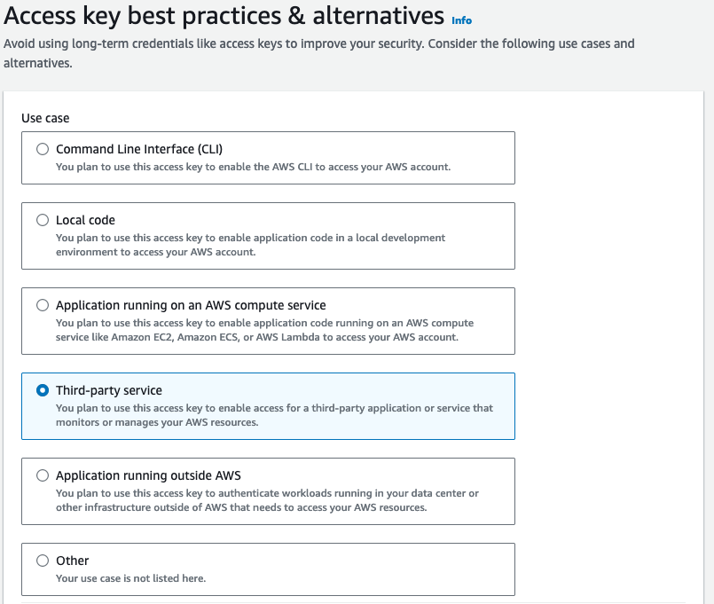 For security reasons, we recommend creating a new restricted user to access the designated S3 bucket. Use the
