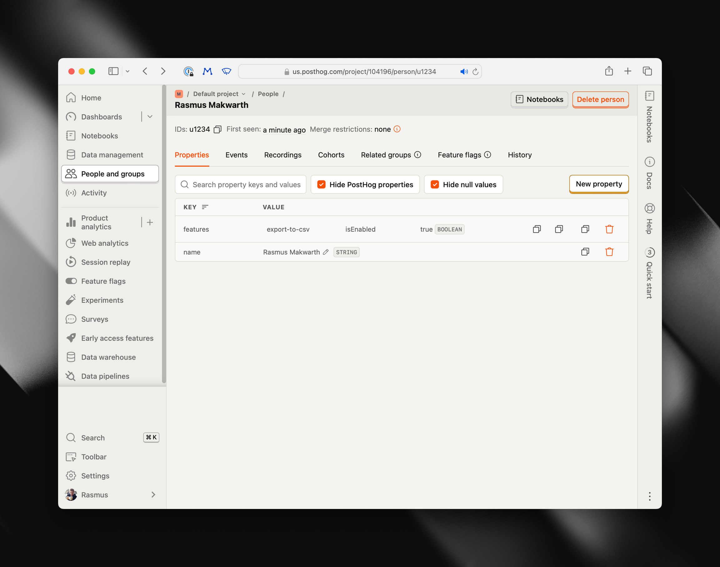How Reflag integrates with PostHog to query analytics based on feature access filters
