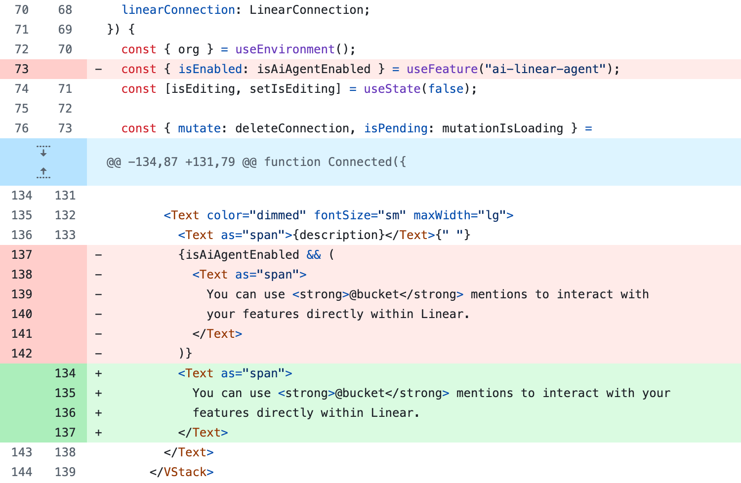 When the bot cleans up the file, it removes the hook and only retains the isEnabled codepath: