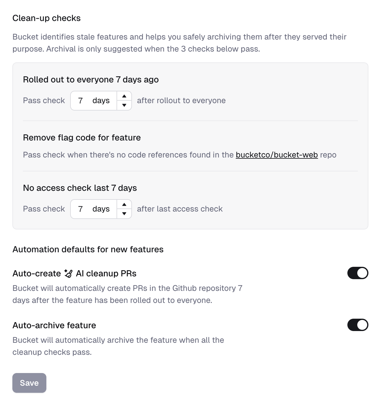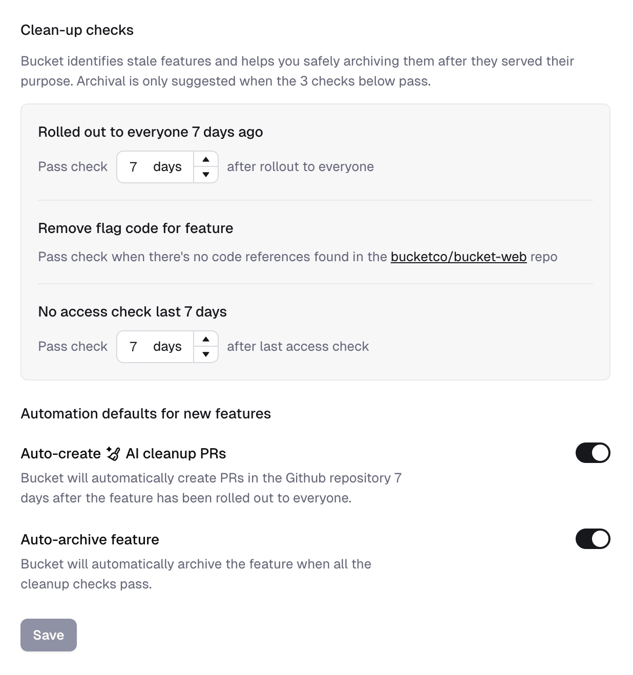 When the GitHub integration has been enabled, Reflag can automatically clean up your code after features turn stale. The Reflag bot simply submits a pull request to your GitHub repository which removes the flag code once a feature turns stale.